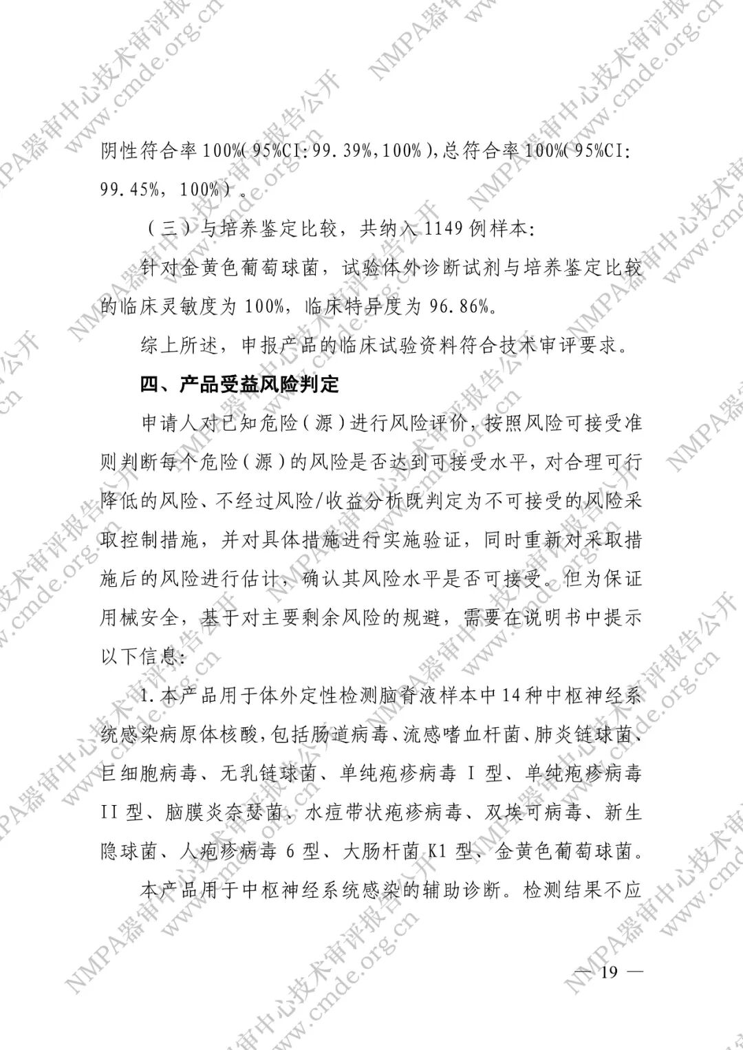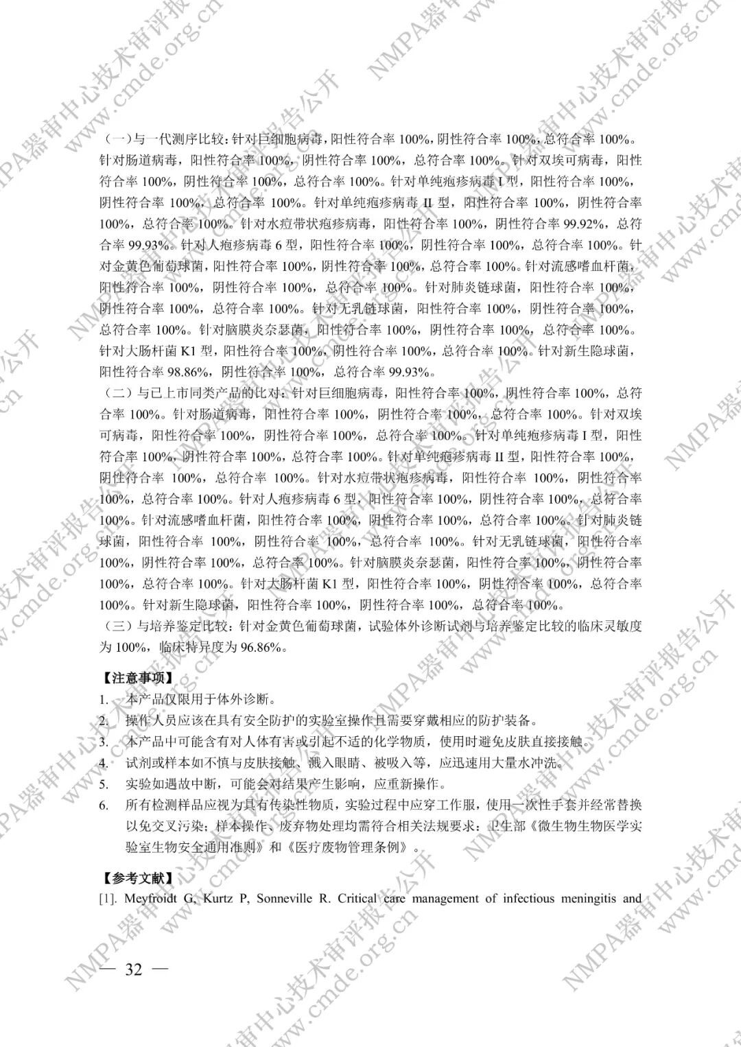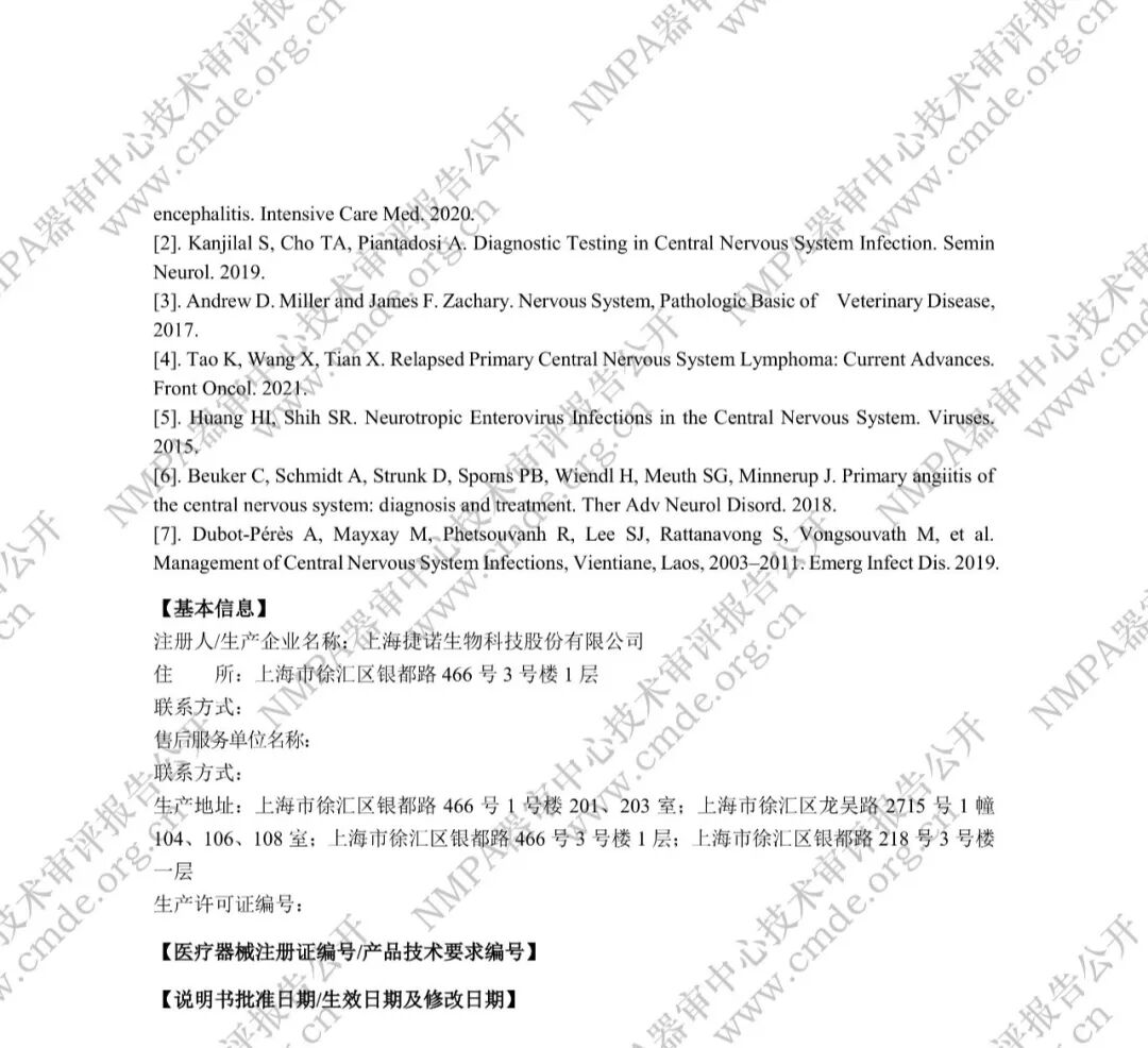 本产品用于中枢神经系统感染的辅助诊断。检测结果不应用作诊断、治疗或其他处置决策的唯一依据。建议结合患者临床表现和其他实验室检测对病情进行综合分析。