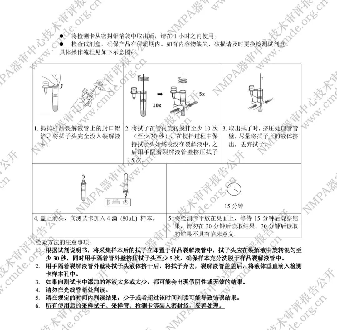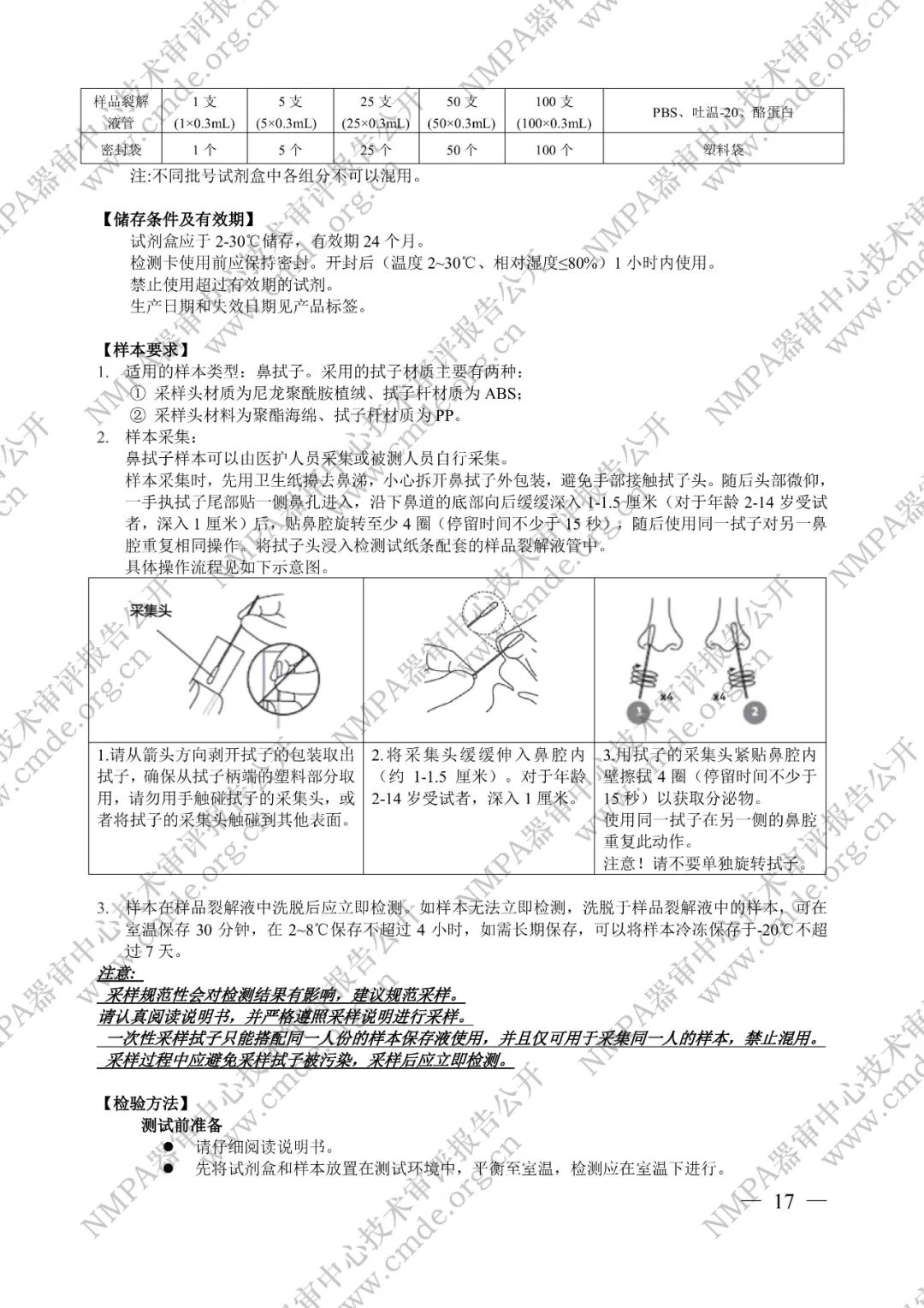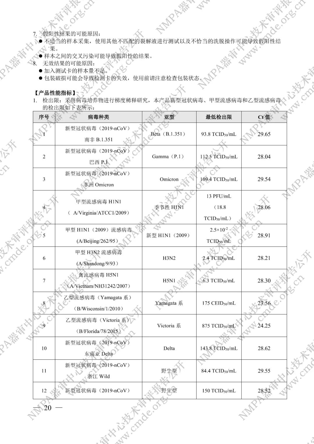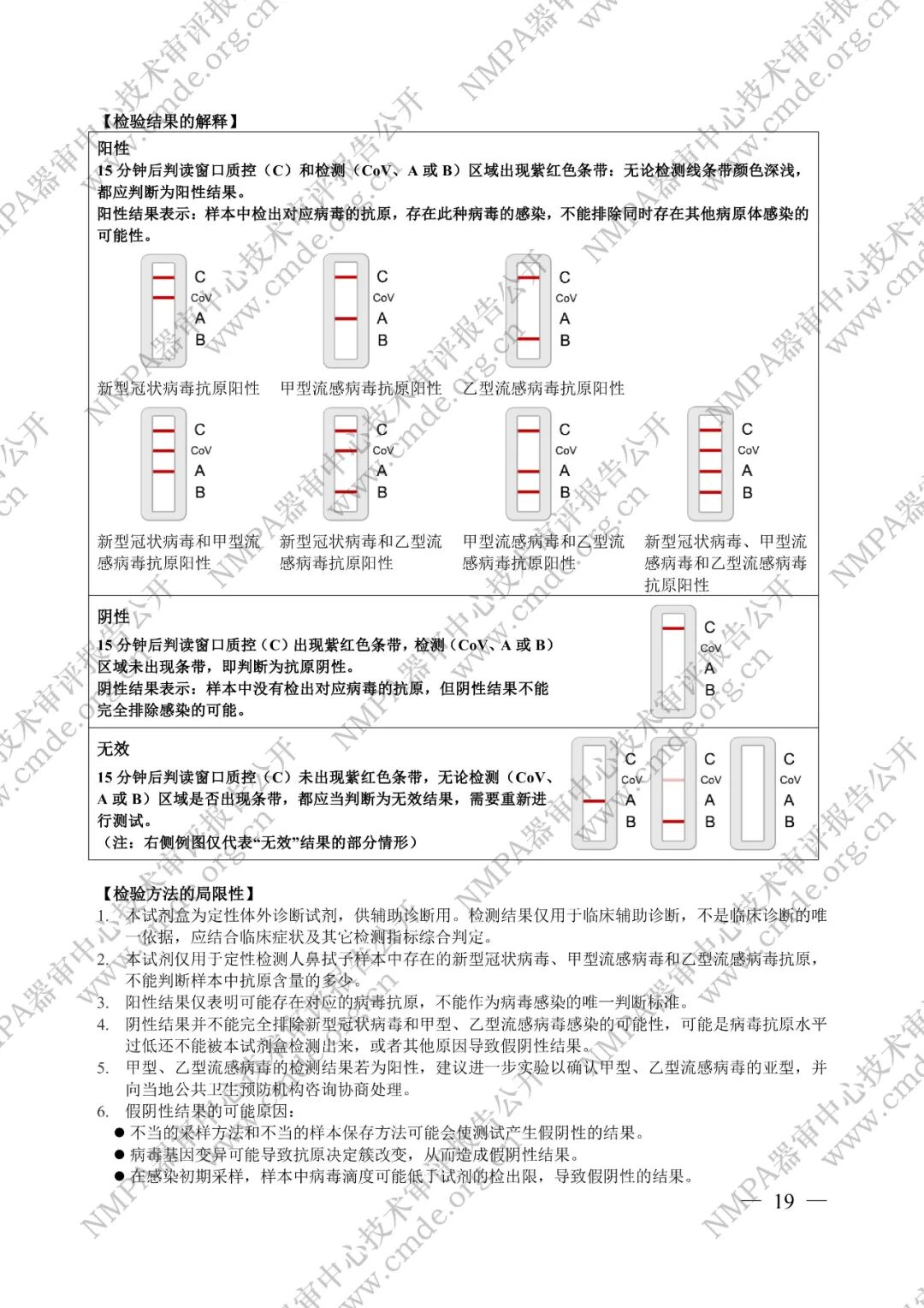 用于体外定性检测具有新型冠状病毒感染或流感相关症状人群、其他需要进行新型冠状病毒感染诊断人群鼻拭子样本中新型冠状病毒(2019-nCoV)核衣壳(Nucleocapsid,N)抗原及甲型和乙型流感病毒抗原。