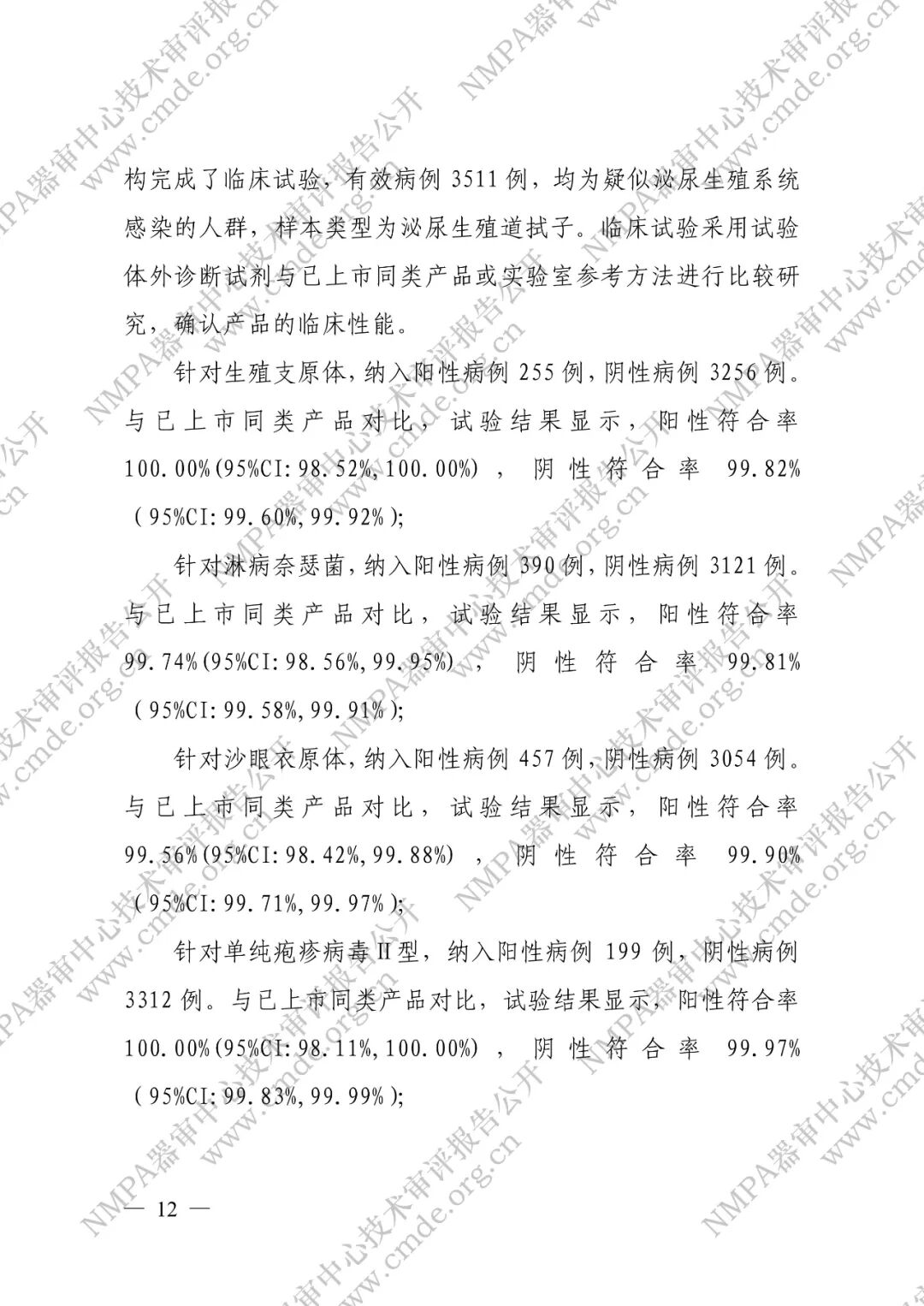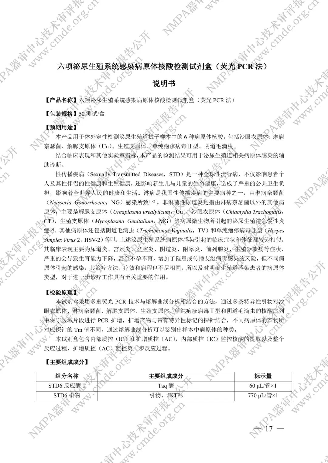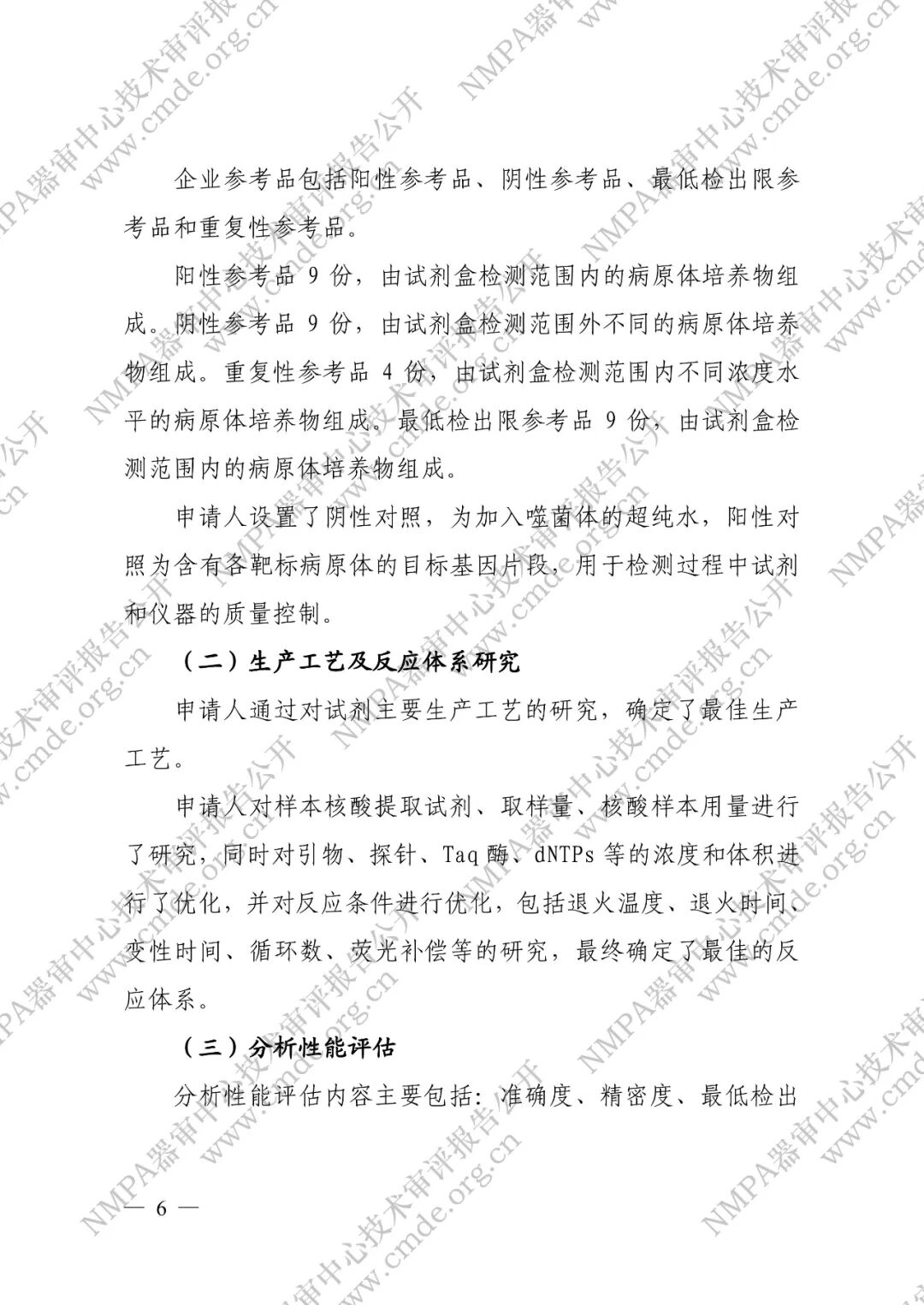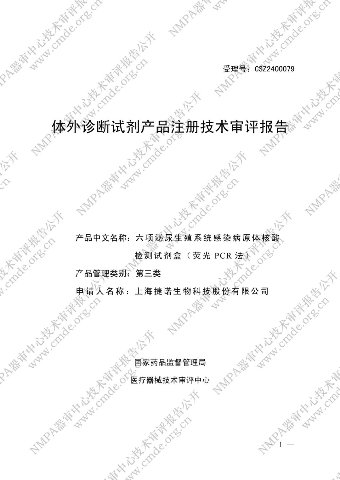 国家药品监督管理局医疗器械技术审评中心9月公开《六项泌尿生殖系统感染病原体核酸检测试剂盒(荧光 PCR 法)》产品注册技术审评报告。申请人:上海捷诺生物科技股份有限公司。