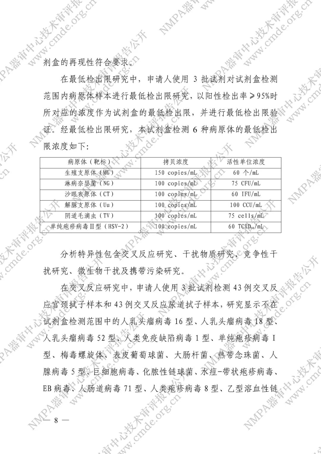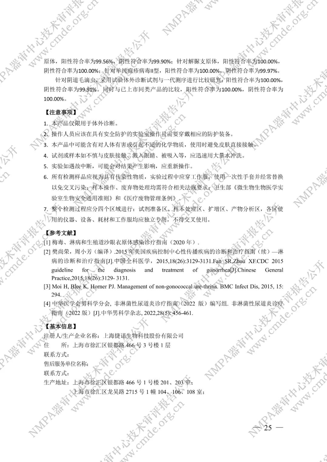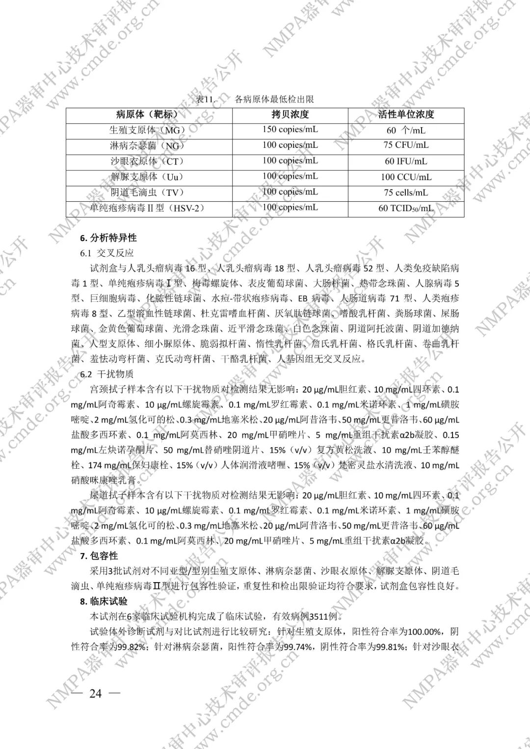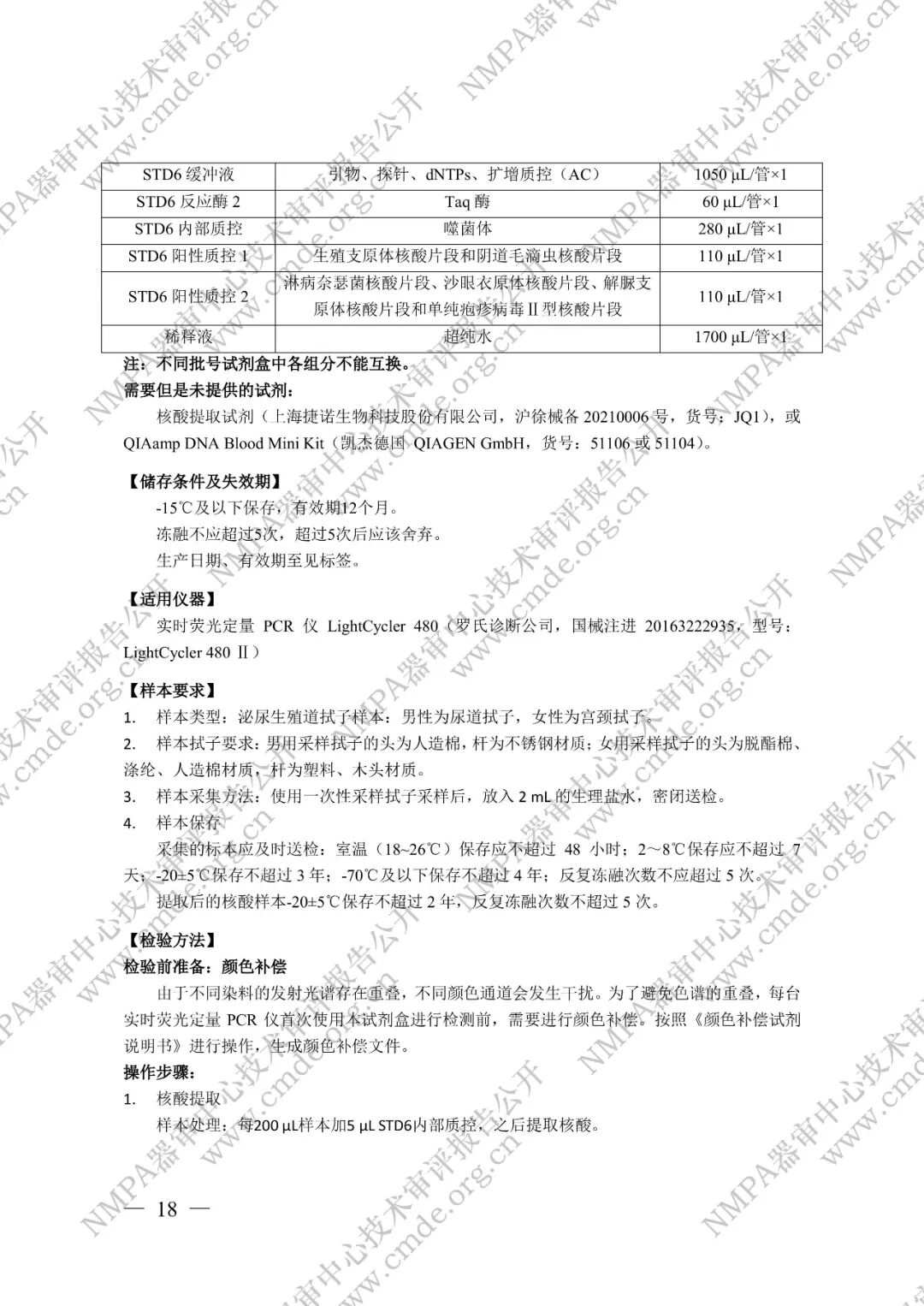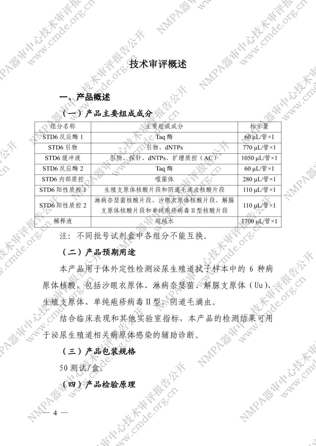 国家药品监督管理局医疗器械技术审评中心9月公开《六项泌尿生殖系统感染病原体核酸检测试剂盒(荧光 PCR 法)》产品注册技术审评报告。申请人:上海捷诺生物科技股份有限公司。