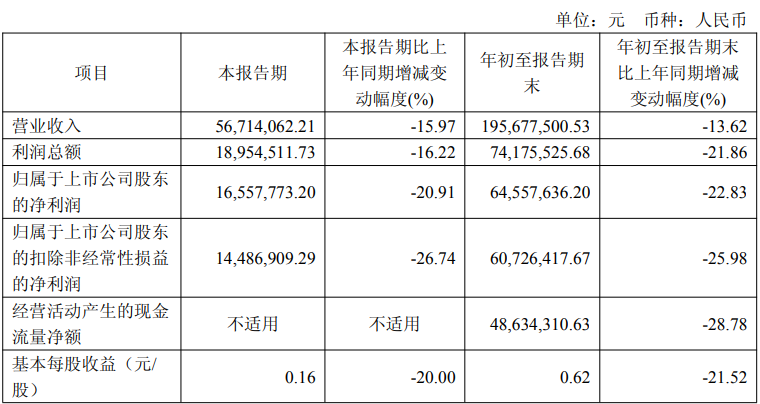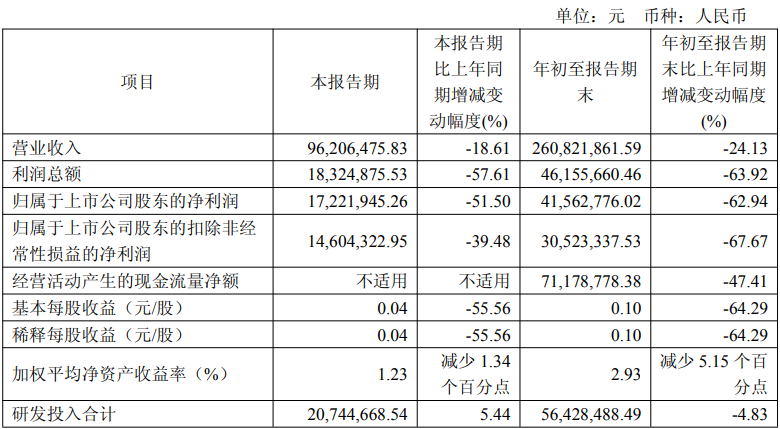 10月29日,广州禾信仪器股份有限公司发布了2025年三季报,公告显示,2025年第三季度企业营收0.18亿,同比减少61.60%,年初至报告期末营收0.71亿,同比减少52.81%;第三季度净利-0.19亿,前三季度净利-0.36亿。