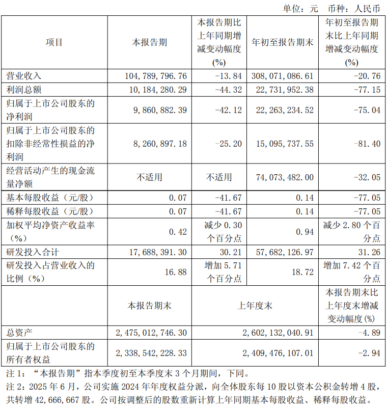 10月29日,科美诊断技术股份有限公司发布了2025年三季报,公告显示,2025年第三季度企业营收0.96亿,同比减少18.61%,年初至报告期末营收2.61亿,同比减少24.13%;第三季度净利0.17亿,同比减少51.50%,前三季度净利0.42亿,同比减少62.94%。