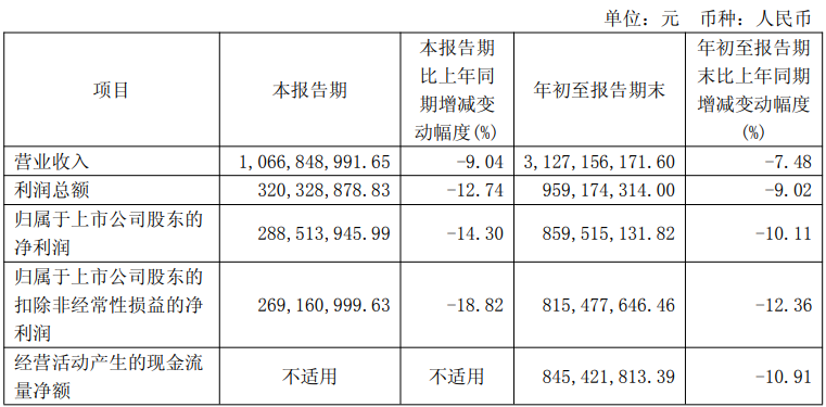 10月29日,郑州安图生物工程股份有限公司发布了2025年三季报,公告显示,2025年第三季度企业营收10.69亿,同比减少9.04%,年初至报告期末营收31.27亿,同比减少7.48%;第三季度净利2.89亿,同比减少14.30%,前三季度净利8.60亿,同比减少10.11%。
