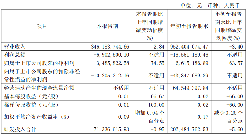 10月29日,上海润达医疗科技股份有限公司发布了2025年三季报,公告显示,2025年第三季度企业营收17.98亿,同比减少11.91%,年初至报告期末营收52.68亿,同比减少14.70%;第三季度净利-0.42亿,同比减少2.83%,前三季度净利-1.63亿,同比减少422.64%。