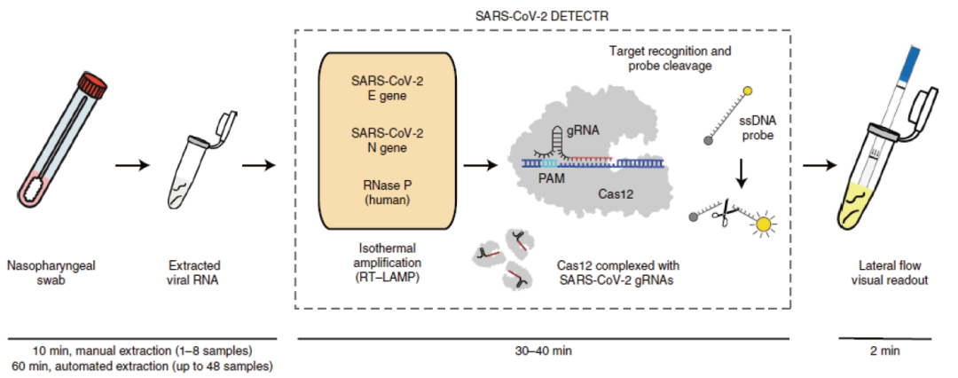 2018年4月,Jennifer Doudna团队在SCIENCE上发表文章,阐述了将Cas12a与等温扩增结合,建立了一种DNA endonuclease-targeted CRISPR trans reporter (DETECTR)的方法,达到了DNA检测的最高灵敏度。DETECTR能够在患者样本中快速、特异地检测到人乳头瘤病毒(HPV),从而为分子诊断提供了一个简单的平台。